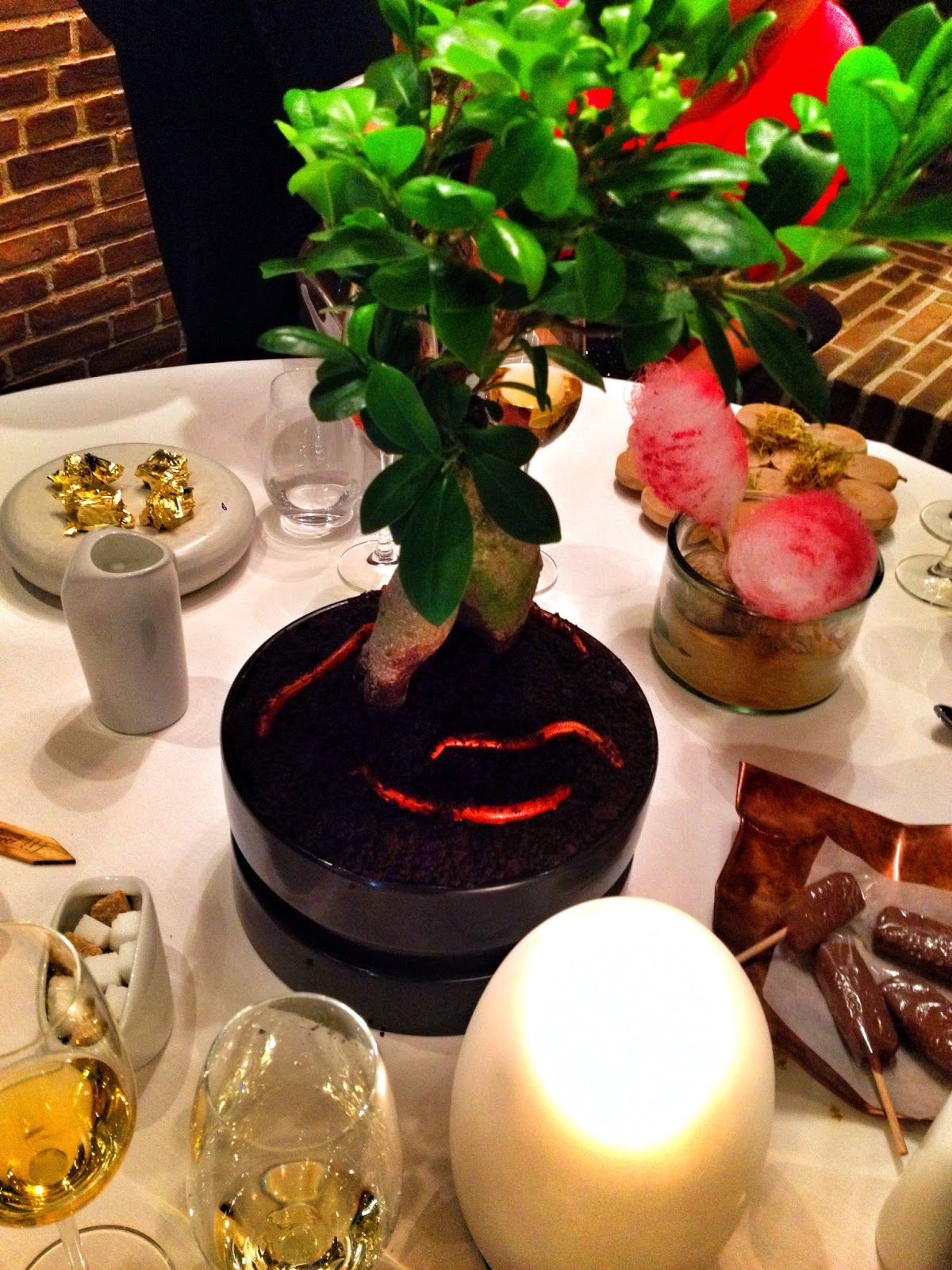 Se selv billederne. Regnorme i fals muld. Man blev sgu i tvivl om de var ægte (det var de så ikke), guldkarameller, dumle i spisbart papir, karamel i mos...ikke moooooos, men mååås.